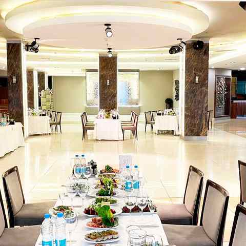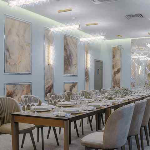 Вниманию гостей несколько площадок: ресторан «Виктория Платинум» — уютный зал-трансформер, где с комфортом разместится до 300 человек, а также банкет-холл «Сапфир» с изумительным видом на Парк Победы, общей вместимостью до 70 персон. Имеется звуковое и световое оборудование, сцена, танцпол, TV, проектор. Возможна организация выступлений артистов, музыкантов и танцевальных коллективов.