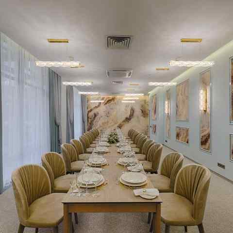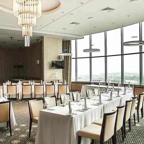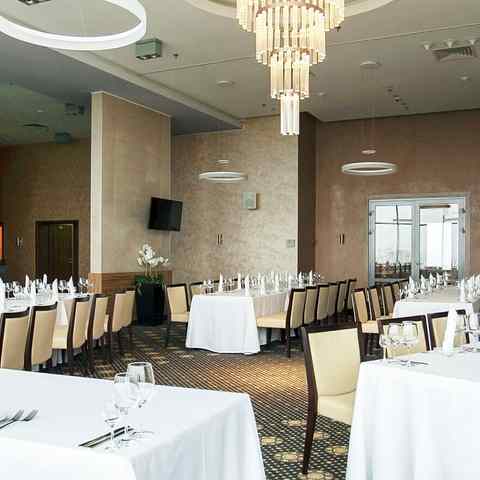 Вниманию гостей несколько площадок: ресторан «Виктория Платинум» — уютный зал-трансформер, где с комфортом разместится до 300 человек, а также банкет-холл «Сапфир» с изумительным видом на Парк Победы, общей вместимостью до 70 персон. Имеется звуковое и световое оборудование, сцена, танцпол, TV, проектор. Возможна организация выступлений артистов, музыкантов и танцевальных коллективов.