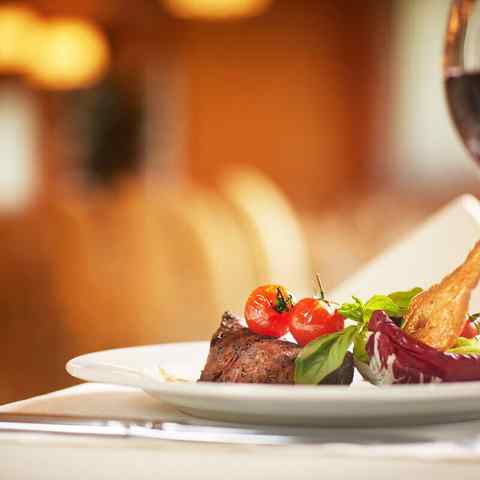 В меню ресторана — блюда белорусской и европейской кухни. Представлено широкое разнообразие холодных и горячих закусок, салатов, рыбы и морепродуктов, горячих позиций, гарниров и соусов. Бар ресторана представлен обширной винной картой.